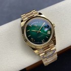 Model # 228238 | 228238-0069 New Rolex Day-Date 40 Men's Luxury Watch With Manufacturer Serial Numbers Swiss Made Green Ombré Dial Index & Roman Numeral Hour Markers Polished Solid 18k Yellow Gold Fluted Bezel Day & Date Features Date Window Displayed at 3 O'Clock Cyclops Lens Over Date Day Window Displayed at 12 O'Clock Instantaneous Day & Date Setting Feature Stop-seconds Feature for Precise Time Setting 70 Hour Power Reserve Self-winding Automatic Movement COSC Superlative Chronometer Certified Rolex Caliber 3255 Vibrations Per Hour: 28,800 Jewels: 31 6 Year Warranty Guaranteed Authentic Manufacturer Box & Manual Polished Solid 18k Yellow Gold Case Brushed with Polished Solid 18k Yellow Gold President Bracelet Scratch Resistant Sapphire Crystal 100 Meters / 330 Feet Waterproof 40mm = 1 1/2" Case, 7" Adjustable Bracelet Inlet Size: 20mm Fixed Bezel Screw Down Crown with Twinlock Double Waterproofness System Screw Down Case Back Concealed Folding Crownclasp Deployment Buckle Free Bracelet Sizing